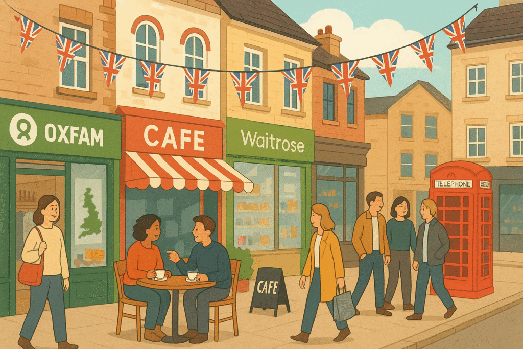 イギリスには、町の中心にHigh Street と呼ばれる通りがあり、その両側にカフェやレストラン、スーパー、生活用品店などが軒を連ねています。