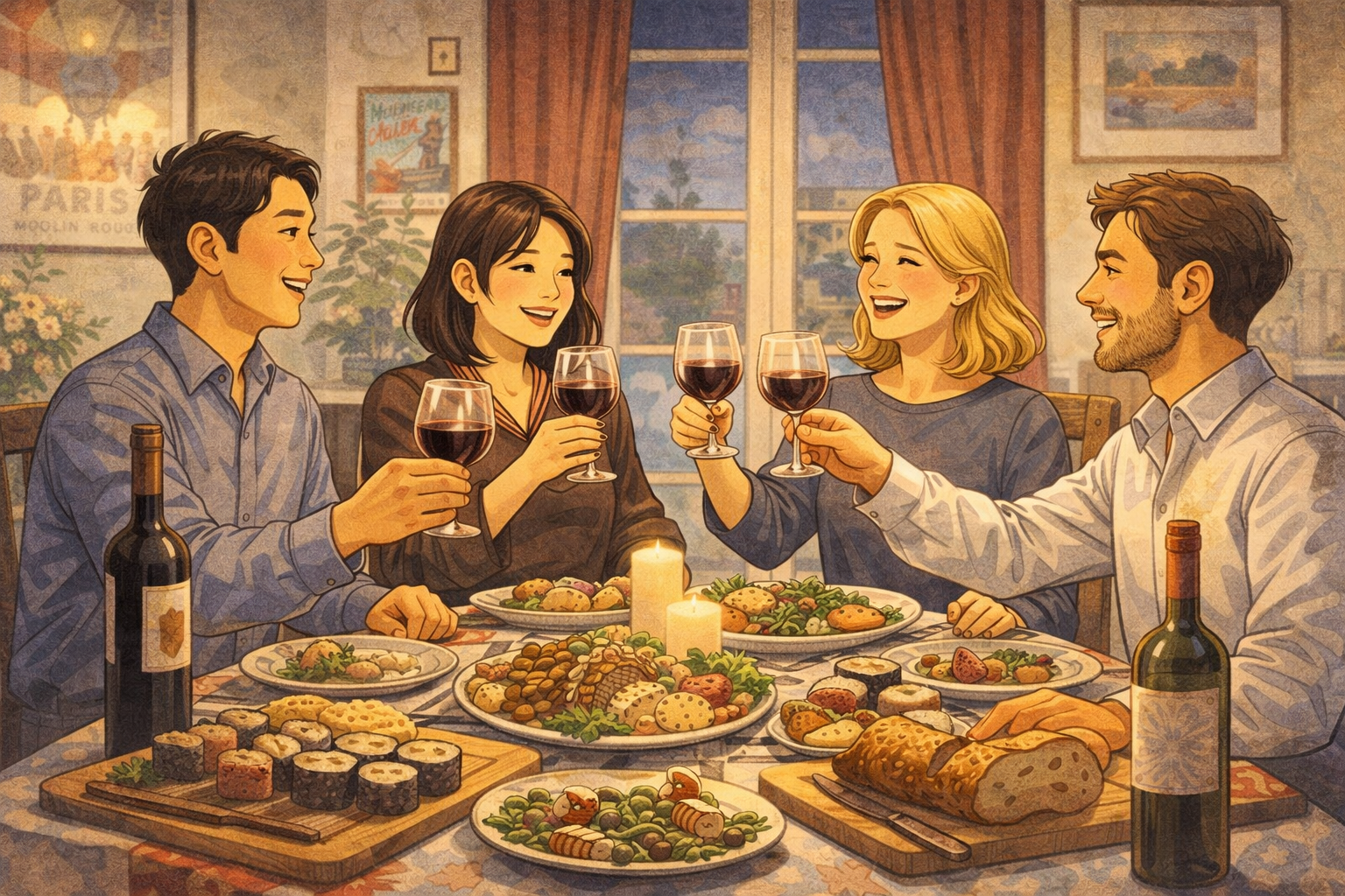フランスでは親しい間柄ほどお互いの家にまねいて食事します。