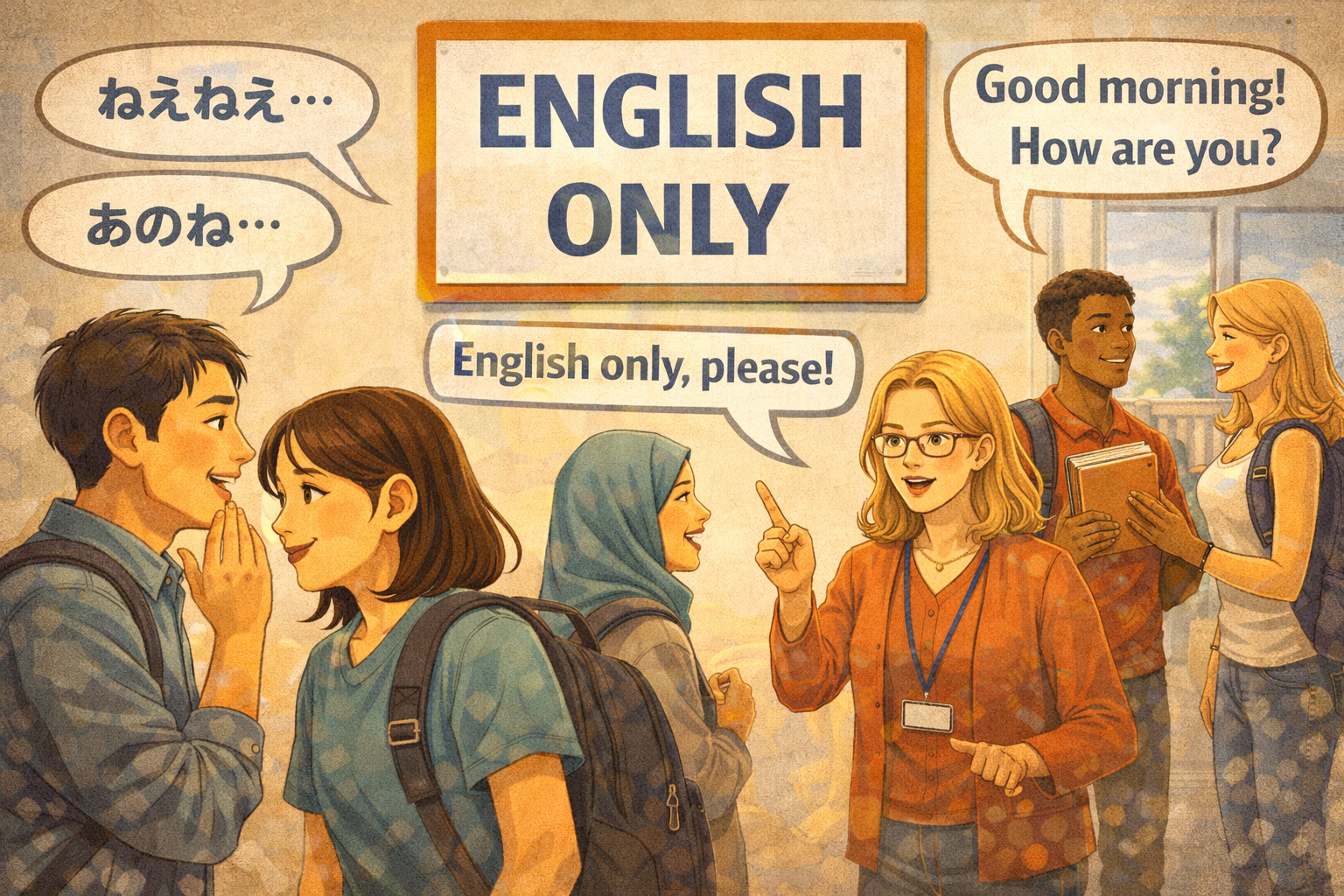 私の通っていた学校はわりとルールが少なかった気がするのですが、語学学校では母国語を話すのは禁止、「ENGLISH ONLY」ルールがありました。
